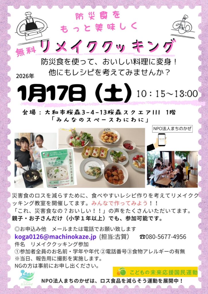 2026年1月17日(土)防災食をもっと美味しく!リメイククッキングを開催いたします!